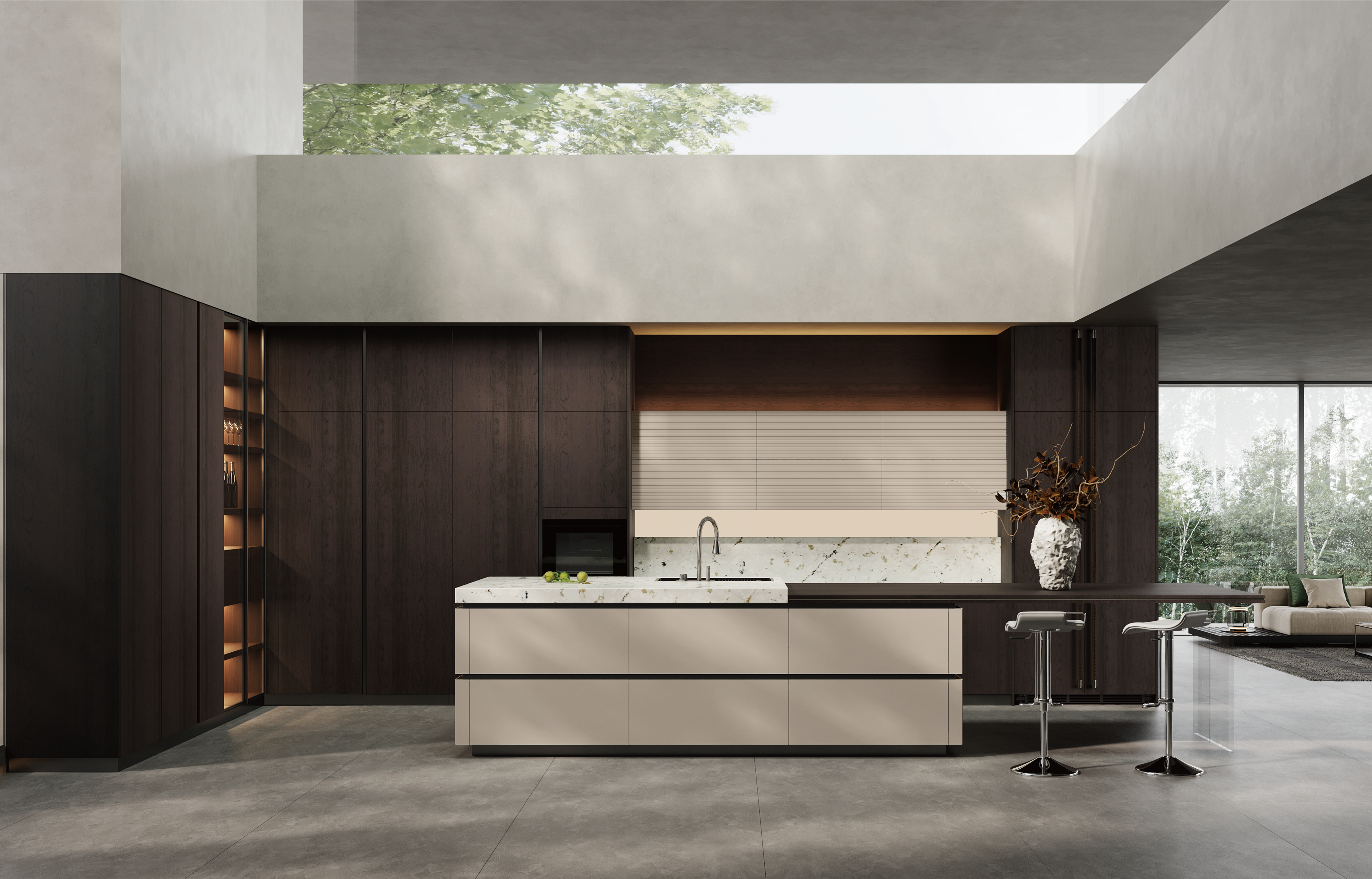 通过BBIN宝盈厨柜量体裁柜,定制出适合主厨下厨的烹饪区和洗涤区的舒适高度。